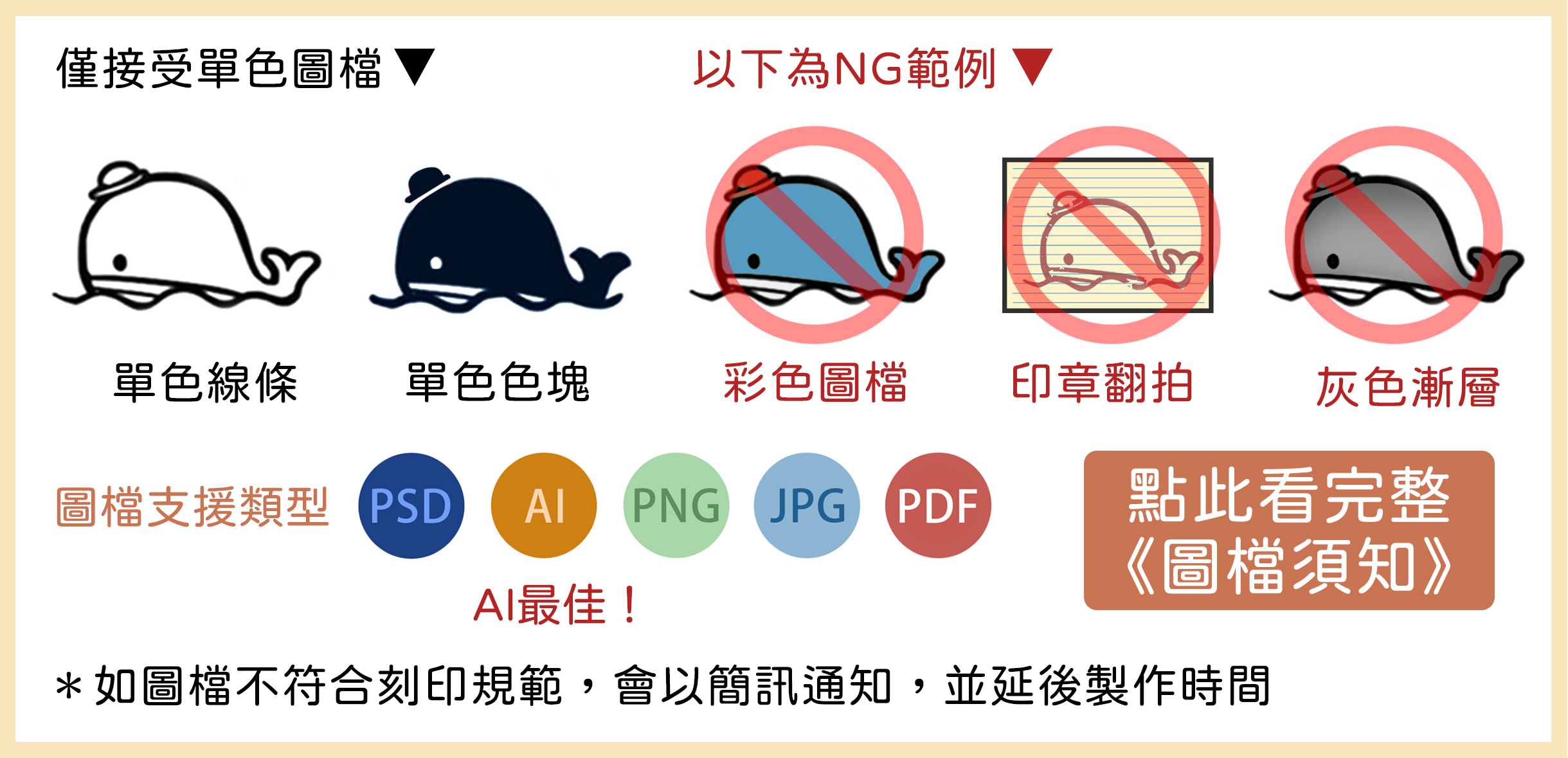 ‼️有AI檔請上傳AI檔 ‼️下單前請先傳圖至官方LINE確認圖檔 請移除圖檔多餘框線及空白處 未調整導致成品與訂購尺寸不符,不提供退換貨服務